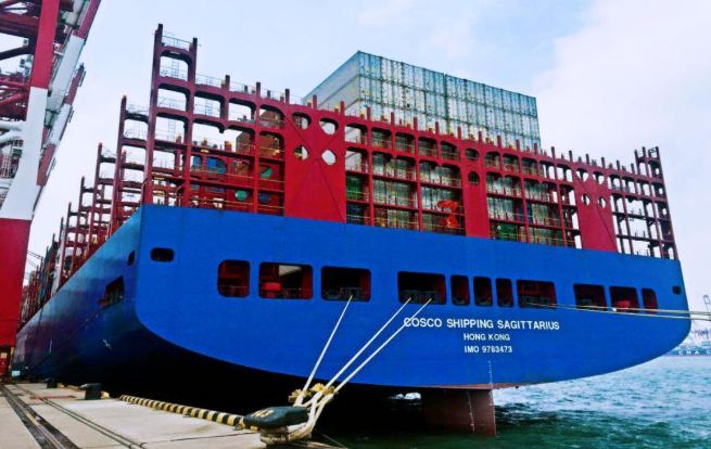 此次在前灣聯合集裝箱碼頭接用智光岸電系統的船舶,是由中國船舶工業集團所屬中遠海運集裝箱運輸有限公司建造的20000TEU級超大型集裝箱船舶“中遠海運人馬座輪”。該船總長399.8米,型寬58.6米,設計航速22.5海里/小時,最大載重量20萬噸。甲板面積接近4個標準足球場,是中遠的20000標廂星座級集裝箱船,排水量可超過兩條遼寧號艦空母艦。