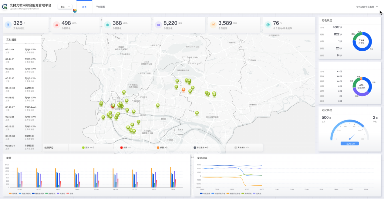 通過大數據、云計算、邊緣計算和AI技術開展設備的實時監控,智能運維,光儲充系統綜合能量控制與優化,參與電力市場交易,響應電網輔助服務。通過充電過程數據分析為車主提供電池檢測服務。該平臺基于光伏、儲能、充電樁以及變壓器負荷檢測數字化物聯裝置為基礎,可實現充電站微網能量控制獨立部署、運行。其主要功能包括運行管理、設備管理、能源大數據、能量管理等4個子功能模塊,分別從提高安全運行監管效率、確保設備數據全面性、提高設備運行效率、優化能量效率等方面為客戶創造價值。